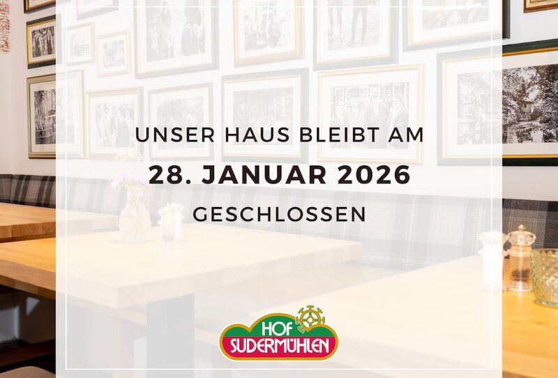 Am 29.01.2026 sind wir ab 12:00 Uhr wieder für Sie da. Das Restaurant öffnet am 29.01.2026 wie gewohnt ab 16:00 Uhr.